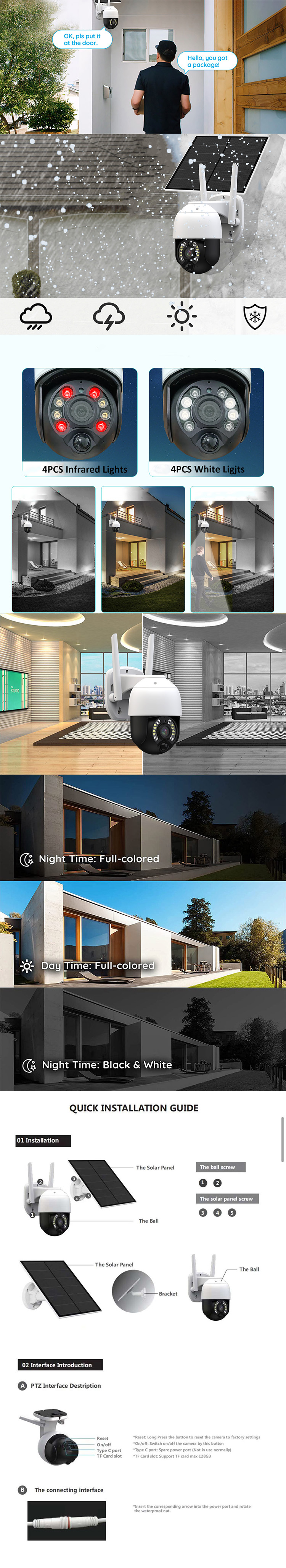 ▪ 110° wide-angle, night vision: 8pcs Infra-Red LED Lights, IR Range: 20M