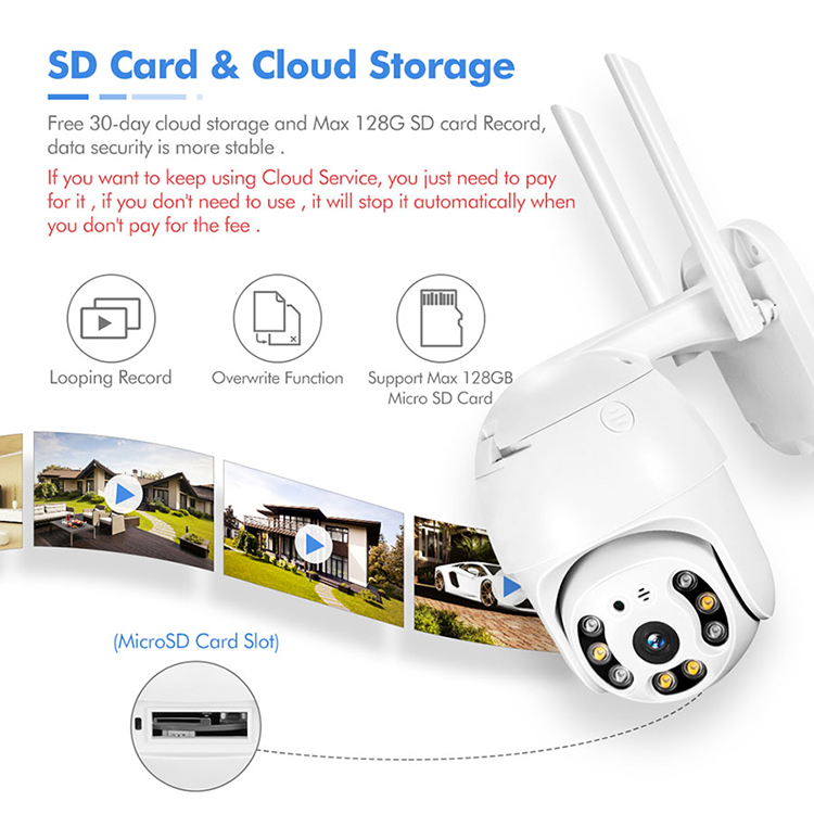 ◆Local storage: Up to 64G micro SD, Cloud Storage