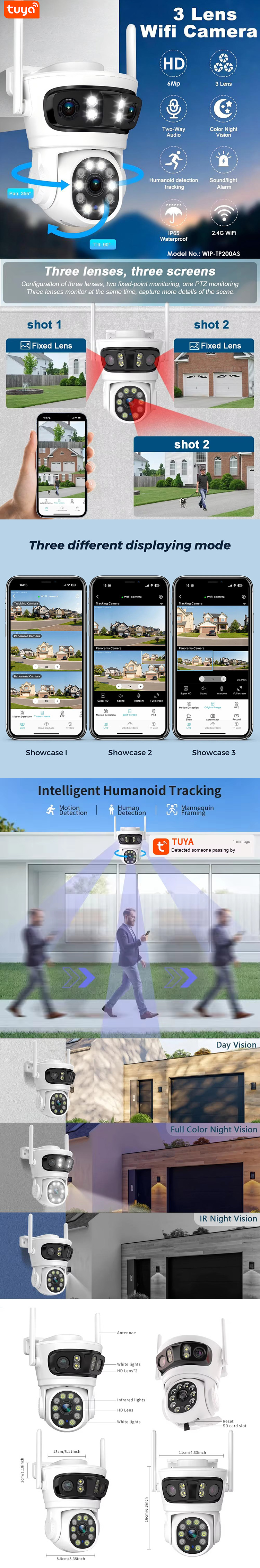 3-Lens 3-Screen Pan Tilt Camera